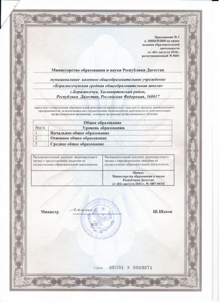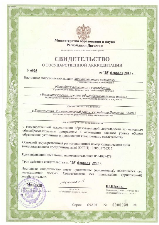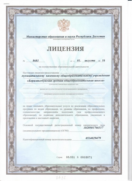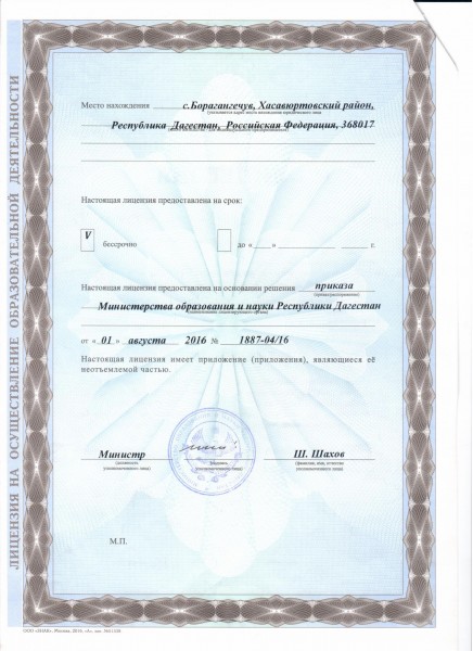 | Адрес местонахождения образовательной организации* | 368017 РД Хасавюртовский район с.Борагангечув ул.Первая 42 |